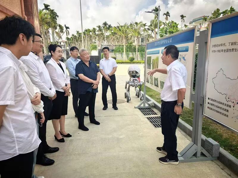 在崖州湾实验室调研期间,调研组一行参观了国家野生稻种质资源圃,并与中国科学院院士、崖州湾实验室副主任钱前院士及水稻、玉米、大豆等科研团队座谈交流,细化崖州湾实验室建设等合作事宜。金莉表示,崖州湾国家实验室是国家种业创新的核心战略平台,在前沿育种技术、高端人才、种质资源等方面优势显著,是辽宁建设高水平种业创新平台、实现高质量发展的重要合作伙伴。希望以此次交流为契机,建立常态化对接机制,推动全方位、深层次合作,实现优势互补、资源共享、协同攻关。双方围绕共建高水平科研平台、联合开展种源关键核心技术攻关、优质种质资源共享、高层次人才联合培育、科研成果高效转化、筹备举办中国超级稻三十周年系列活动等重点议题深入交流,达成多项共识。钱前院士详细介绍了实验室战略定位、科研布局、种质资源共享、前沿技术攻关及全国种业创新协同体系建设情况,高度认可辽宁作为农业大省、种业大省的科研基础、资源禀赋与南繁体系优势,表达了携手推进种业科技自立自强的强烈意愿。