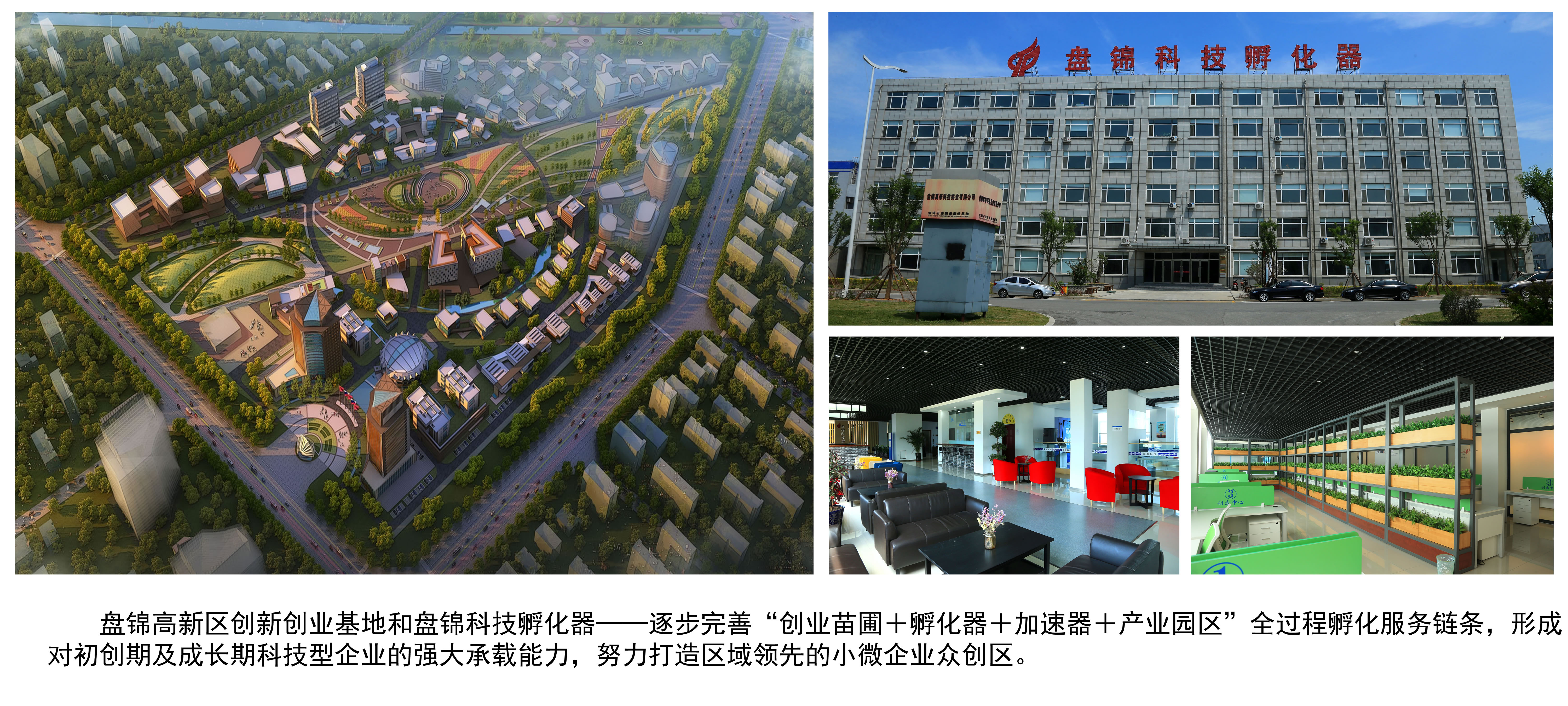 盘锦高新区是2013年经省政府批准建立的省级高新区,区域面积为29.75平方公里,高新区管委会为市政府派出机关。近年来,园区相继被确定为辽宁沿海经济带重点园区、中国石油天然气集团公司装备制造基地、国家新型工业化产业示范基地,国家专业资本集聚型双创示范载体。2019年高新区实现地区生产总值267.9亿元,同比增长5.9%;公共财政预算收入22.5亿元,同比增长10.1%;研究与试验发展经费7.69亿元,占地区生产总值的2.8%。高新区拥有研发人员2409人,其中硕士以上文凭895人,有效发明专利283件,同比增长19.9%。
