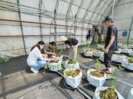 辽宁省凤城市蓝莓科技特派团和辽宁省宽甸满族自治县蓝莓乡村振兴科技特派团分别到凤城市边门镇和宽甸县杨木川镇等多个蓝莓种植基地进行指导。特派团通过走访发现部分蓝莓种植基地受暴雨影响较重,进出园区道路冲垮,温室前端存在雨水倒灌情况。持续强降雨天气会造成蓝莓果品质量下降、土壤肥力流失、病虫害加剧等问题,特派团就夏季防汛工作、肥水平衡、病虫害防治等方面,提出完善排水系统、及时监测基质渗出液Ec值、施用呋虫胺防治白粉虱等专业建议和指导。