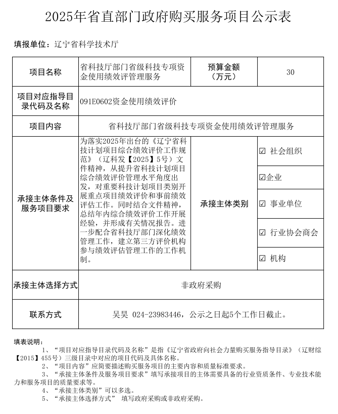 2025年省直部门政府购买服务项目公示表(奈飞 部门省级科技专项资金使用绩效评价管理服务)