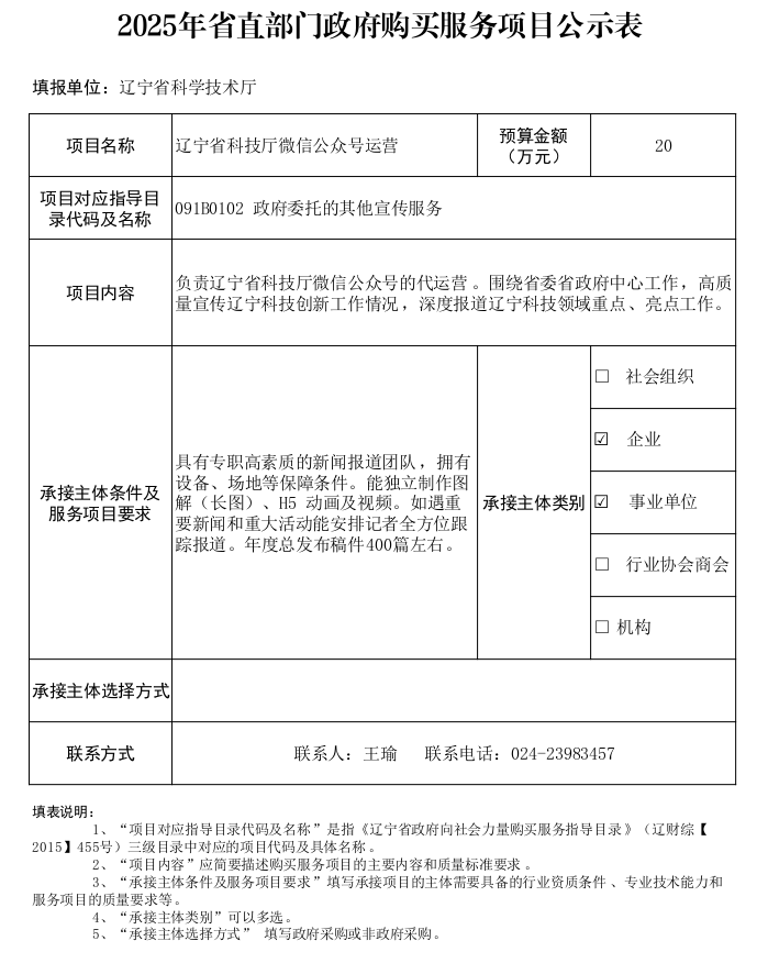 2025年省直部门政府购买服务项目公示表(辽宁奈飞 微信公众号运营)