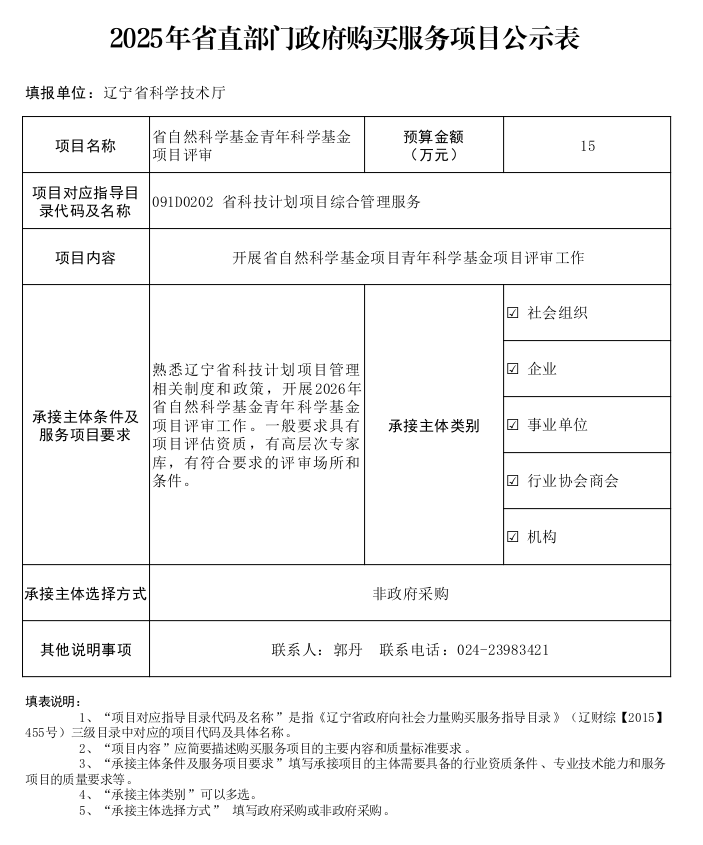 2025年省直部门政府购买服务项目公示表(省自然科学基金青年科学基金项目评审)